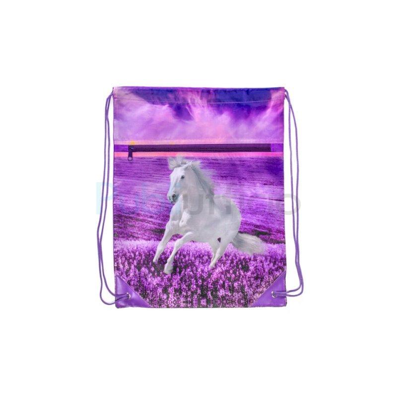 Sacca ideale come accessorio per chi pratica: ginnastica, palestra o qualsiasi tipologia di sport. Dotata di tasca con cerniera e spazio per etichetta portanome. Realizzata in 4 fantasie assortite. Angoli rinforzati. Materiale: poliestere. Dimensioni: 42,5 x 33 cm. Disponibile in confezione da 8 pezzi.