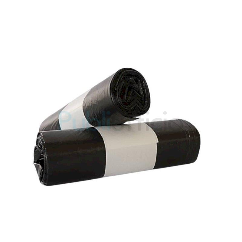 Sacchi in rotolo 48 x 57 cm per nettezza urbana. Realizzati in polietilene ad alta densità (HDPE) + master nero, con legaccio. Colore: nero. Saldatura: antigoccia. Grammatura sacco: 4,9 g. Spessore: 9 µm. Confezione da 25 sacchi.
