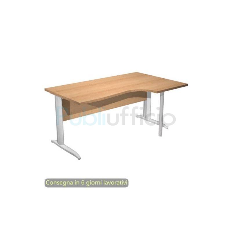 Scrivania penisola destra piano faggio 160x60/80/100xH.72 cm gamba ad L metallo grigio Presto Compact - 008K211/6/AA