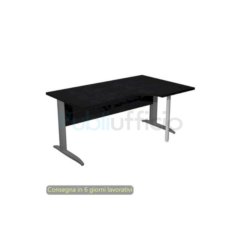 Scrivania della linea Presto, una linea operativa contemporanea progettata per un utilizzo quotidiano ed intensivo in grado di soddisfare tutte le esigenze funzionali ed estetiche. La gamma completa degli elementi permette di allestire ogni ambiente di lavoro, personalizzandolo con stile. Scrivanie con dimensioni conformi alle normative sulla sicurezza dei posti di lavoro in ufficio. Dimensioni L. 160 x P. 60/80/100 x H. 72 cm. Sagomatura laterale destra con sostegno in metallo grigio alluminio. Piani antigraffio ed antiriflesso in bilaminato nobilitato melaminico spessore 22 mm e modesty panel strutturale sp. 18 mm conformi alle norme UNI e EN classe E1. Bordi dei piani in ABS 3 mm antiurto ed assenza di spigoli vivi. Fianchi in metallo verniciato ad L. Imballi in cartone riciclato alto spessore a tutela dell’ambiente. Produzione certificata conforme alle procedure UNI EN ISO 9001. Certificazioni FSC e PEFC. Piano e controvenatura nero venato frassino. Fianchi antracite opaco.