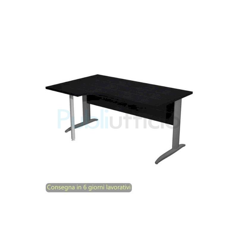 Scrivania penisola sx nero ven. frassino 160x60/80/100xH.72 cm gamba a L metallo antracite - Presto Compact 009K211/8/AF