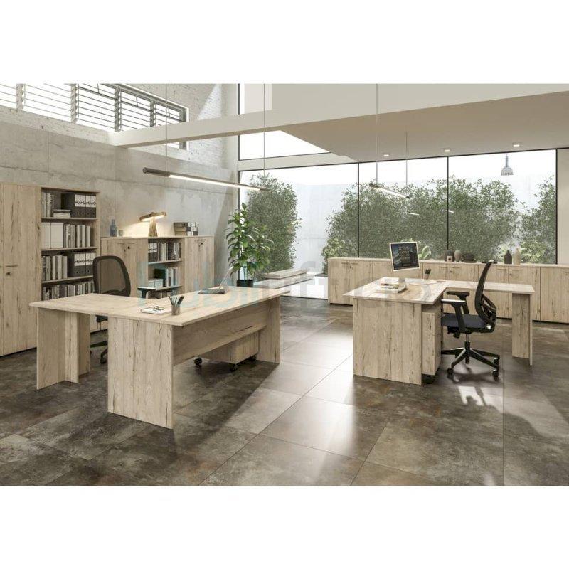 Scrivania Presto con gambe a pannello in melaminico, una linea economica ma caratterizzata da soluzioni tecniche di livello superiore. Una serie di scrivanie con dimensioni conformi alle normative sulla sicurezza dei posti di lavoro in ufficio. Realizzata in materiale bilaminato nobilitato melaminico, con piano e fianchi di spessore 22 mm e “Modesty Panel” anteriore da 18 mm, in finitura antigraffio e antiriflesso. Bordo dei piani in ABS di 3 mm di spessore, antiurto e senza spigoli vivi. Dimensioni 80x80xH.72 cm, finitura piano e fianchi di colore rovere canadese. Peso totale imballi 29 kg. Tutti i materiali utilizzati durante l'intero ciclo di produzione rispondono ai criteri imposti dalle normative vigenti. Artexport impiega nella lavorazione pannelli nobilitati in melaminico conformi alle norme UNI e EN classe E1 (Certificato CATAS, emissione di gas nocivi in caso di incendio). I pannelli sono certificati FSC e PEFC: sono ottenuti recuperando materiali legnosi di riciclo, con l'intento di contenere sia la produzione di rifiuti da discarica sia il fenomeno del disboscamento intensivo a fini industriali. Imballo a tutela dell'ambiente totalmente in cartone per un completo riciclo. Produzione interna certificata Iso 9001. Prodotto venduto in kit facilmente assemblabile dal cliente finale grazie alle intuitive istruzioni presenti in ogni imballo. Il processo di montaggio/smontaggio è reversibile e replicabile anche dal cliente, in maniera completamente autonoma. In caso di rottura di un singolo pezzo la modularità degli elementi ne consente la sostituzione senza dover ricorrere allo smaltimento dell’intero mobile.