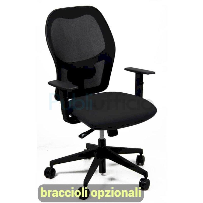 Sedia operativa girevole Unisit Hubble HUHU schienale in rete nero - rivestimento pelle nero - HUHU/PN