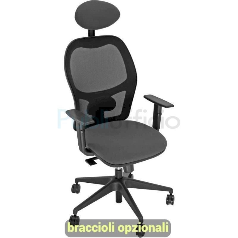 Sedia operativa girevole Unisit Hubble HUHUPG con poggiatesta schienale in rete riv. ecopelle grigio HUHUPG/KG