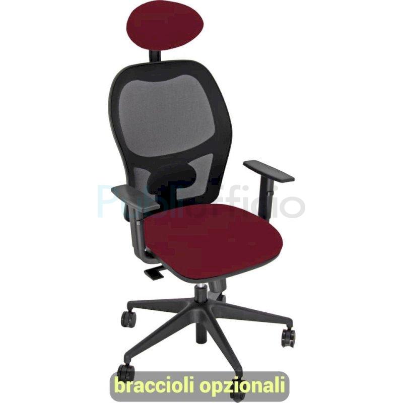 Sedia operativa girevole Unisit Hubble HUHUPG con poggiatesta schienale in rete riv. ignifugo bordeaux HUHUPG/ID