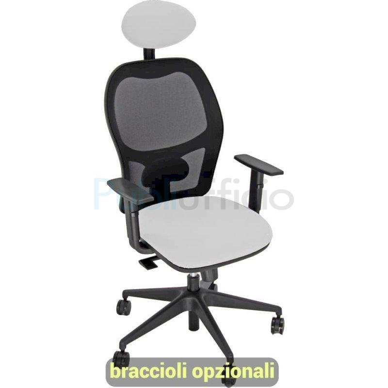 Sedia operativa girevole Unisit Hubble HUHUPG con poggiatesta schienale in rete riv. pelle bianco HUHUPG/PQ