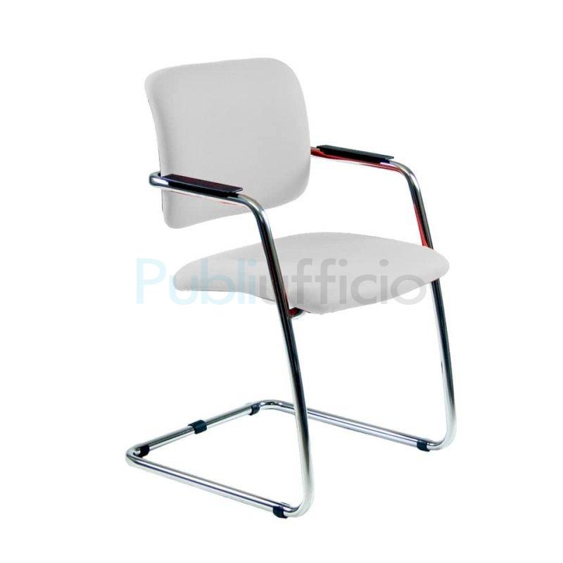 Sedia visitatore con slitta Unisit Lithium LTLT struttura cromata - rivest. pelle bianco - impilabile LTLT/PQ