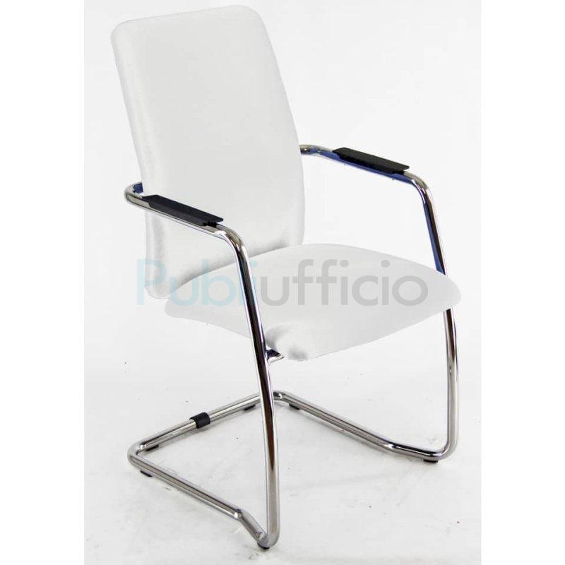 Sedia visitatore con slitta Unisit Lithium LTLTA schienale alto - rivest. ecopelle bianco - LTLTA/KQ