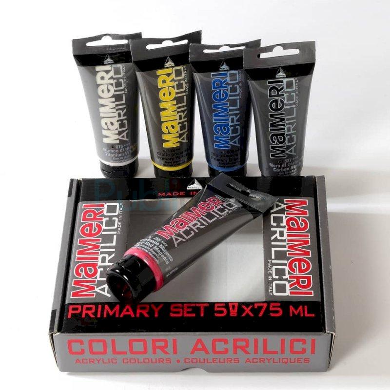 Set colori acrilici primari Maimeri in tubetto 75 ml 5 colori assortiti - M0998190