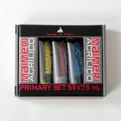 Set colori acrilici primari Maimeri in tubetto da 75 ml. Confezione da 5 colori assortiti.