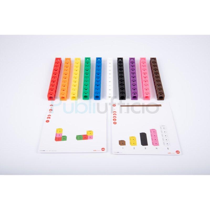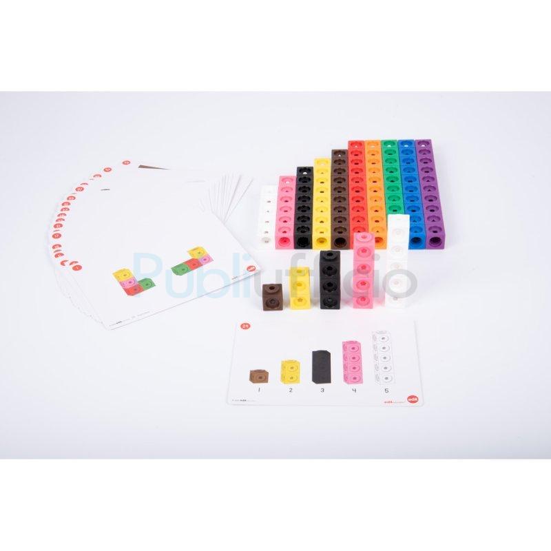 Set di apprendimento dei cubi matematici. Contenuto: 25 carte attività a doppia faccia e cubi da 100 x 2 cm. Utilizzato per tutti i livelli di apprendimento, è uno strumento ideale per imparare la geometria: modelli, numeri, addizioni, misurazioni e molto altro. Dimensione cubi : 20 mm.