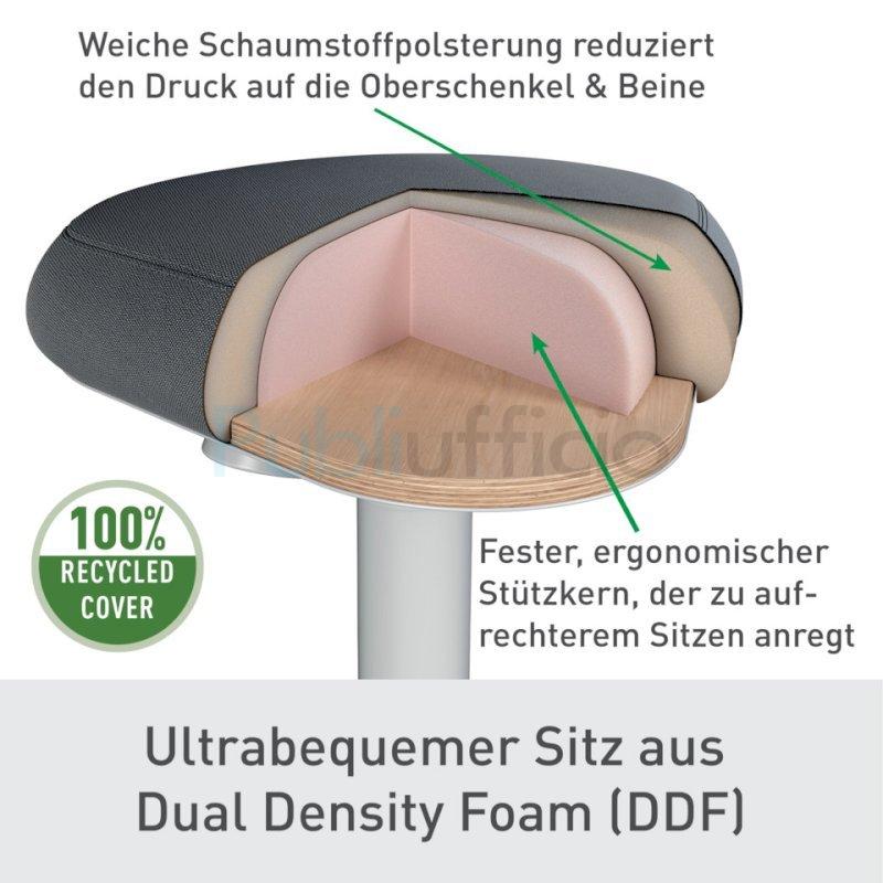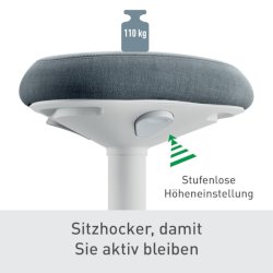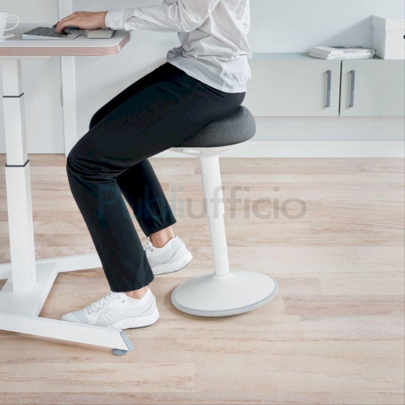 Lo sgabello Leitz Ergo Active da Seduta è dotato di un’esclusiva seduta in schiuma a doppia densità (DDF) con un solido supporto ergonomico. Simile a uno sgabello, la forma triangolare distribuisce il peso in modo uniforme sul bacino ed è circondata da una morbida imbottitura in schiuma per ridurre la pressione su cosce e gambe. Il sedile di 9 cm di spessore è progettato per garantire il massimo comfort e può essere utilizzato appoggiato o completamente seduto, incoraggiando così a sedersi in posizione più eretta e offrendo un'esperienza di seduta ultra confortevole, simile a quella di un cuscino. Sviluppato in collaborazione con l'Istituto per la Salute e l'Ergonomia (IGR), questo sgabello ergonomico da scrivania regolabile in altezza è stato progettato per mantenerti attivo mentre sei seduto alla tua scrivania a casa o al lavoro. La base arrotondata della sedia sgabello incoraggia il movimento attivo ruotando e dondolando mentre si lavora, rafforzando la schiena e il core e prevenendo dolori e disturbi. Regolazione dell'altezza di 17 cm (47 - 64 cm), facile e agevole, premendo il pulsante sotto il sedile per passare all'altezza di seduta perfetta. Il rivestimento del sedile è realizzato con materiale riciclato al 100% e la base in gomma antiscivolo impedisce allo sgabello di scivolare proteggendo il pavimento. Il design leggero e la maniglia per il trasporto sotto il sedile lo rendono facile da spostare da una stanza all'altra e può essere facilmente riposto sotto la scrivania. Questo sgabello moderno e minimalista è ideale per la casa o l'ufficio per migliorare il comfort e massimizzare la produttività. La nostra missione è fornire soluzioni che permettano alle persone di prosperare sul lavoro e oltre, promuovendo una salute mentale e un benessere fisico positivi. Combinabile con molti altri prodotti Leitz Ergo per personalizzare la tua postazione di lavoro flessibile e individuale in modalità sit, stand & move. Rimani attivo e Feel Good con Leitz. Sviluppato in collaborazione con l'Istituto tedesco IGR per la salute e l'ergonomia, secondo la norma DIN 26800 EN ISO 15537, tenendo conto del comfort ergonomico, certificato TÜV e GS per la sicurezza. Dimensioni: 370 x 460 x 377 mm. Peso: 5,1 Kg. Colore: grigio chiaro.