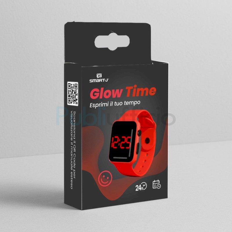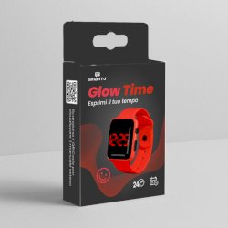 Glow Time è un orologio digitale con display LED rosso su fondo nero, cinturino in TPE soft touch disponibile in sei colori brillanti: rosso, verde, blu, arancio, giallo e nero. Minimal, leggero e resistente, si adatta perfettamente ai polsi di teenager, giovani adulti e spiriti liberi. Un accessorio fashion unisex, gender-free, che fonde funzionalità ed estetica con un linguaggio urbano. Display LED rosso. Cinturino in TPE regolabile. Modalità 24H. Durata batterie: oltre 10 mesi (sostituibile con batterie 2 x AG10). Packaging con QR code per visualizzare il manuale.