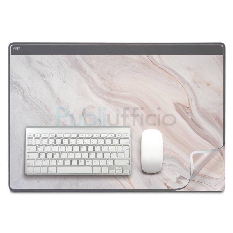 Design elegante per un ambiente di lavoro minimalista e senza tempo. Base stampata con un motivo marmo rosa semplice ed elegante. Finestra antiriflesso che consente di tenere in vista una foto, un calendario, appunti utili quotidiani, ecc. Le sue dimensioni consentono di posizionare la tastiera tra il sottomano e lo schermo. Compatibile con qualsiasi tipo di mouse. Base in morbido materiale antiscivolo. Lavabile su entrambi i lati con acqua e sapone. Realizzato in PVC privo di ftalati. Stampato utilizzando inchiostri privi di solventi, certificati Greenguard Gold. Dimensioni 585 x 385 mm. Spessore 2 mm.