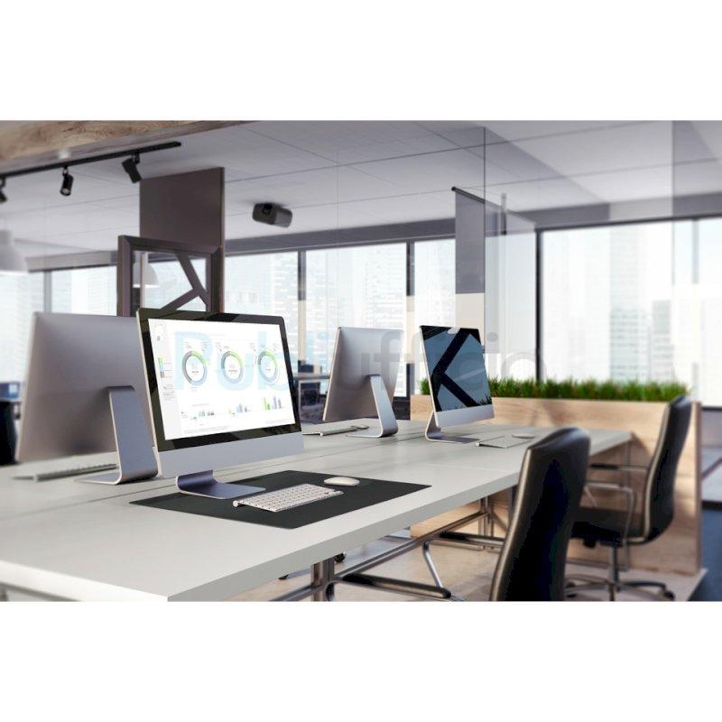 Sottomano realizzato in PPL antiscivolo con angoli arrotondati. Può essere facilmente pulito con un panno umido da entrambi i lati. Formato: 53 x 40 cm. Colore nero.
