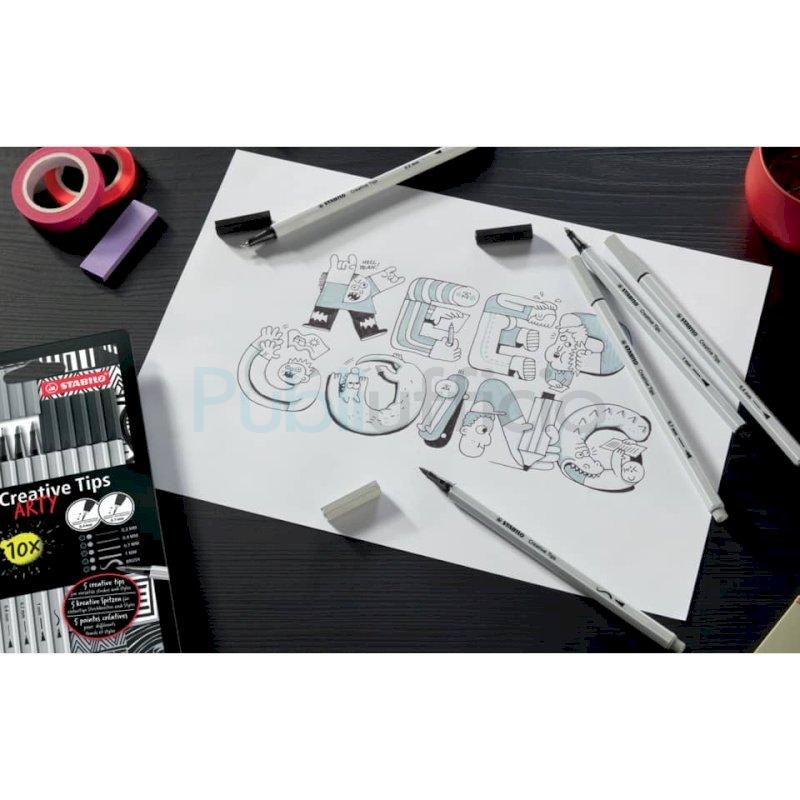 Stabilo Creative Tips - conf. 10 pz - nero e grigio 89/10-1-20