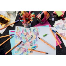 Le penne fineliner Stabilo Point 88 sono le compagne perfette per alunni, studenti e professionisti. Grazie alla sua lunga resistenza anche senza cappuccio non ci si dovrà più preoccupare se lo si dimentica accidentalmente aperto. Sono, inoltre, comode da impugnare grazie al fusto esagonale. Barattolo in metallo da 45 colori di cui 6 fluo.