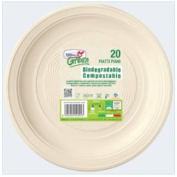 Piatti piani biodegradabili e compostabili Dopla Green avorio Ø 205 mm - conf. 20 pz - 11796