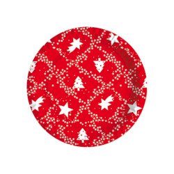 Piatti piani carta fibra vergine Dopla Red Xmas Ø 180 mm - conf. 10 pz - 11817