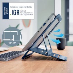 Massimizza il comfort nella tua postazione di lavoro e in viaggio con il supporto ergonomico per laptop regolabile Leitz Ergo Aluminium Ultra-Flat. È possibile scegliere tra 5 diverse impostazioni di altezza per sollevare lo schermo del computer portatile in modo da ottenere un angolo di visione ergonomico e confortevole. Adatto anche per un tablet. Grazie allo SlimLift Design (SLD) e alla custodia protettiva in cotone, questo rialzo per laptop è facile da usare e può essere riposto in una borsa per essere utilizzato in viaggio o riposto in un cassetto. Il supporto regolabile per laptop è realizzato in alluminio robusto e durevole per garantire la massima stabilità e offre una ventilazione aperta per migliorare la circolazione dell'aria intorno al laptop. Viene fornito con un imballaggio privo di plastica e riciclabile al 100%. Questo supporto per laptop moderno e minimalista è ideale per la casa, l'ufficio o in viaggio per migliorare il comfort e massimizzare la produttività. La nostra missione è fornire soluzioni che permettano alle persone di prosperare sul lavoro e oltre, promuovendo una salute mentale e un benessere fisico positivi. Combinabile con molti altri prodotti Leitz Ergo per personalizzare la tua postazione di lavoro flessibile e individuale in modalità sit, stand & move. Rimani attivo e Feel Good con Leitz. Colore: grigio scuro. Dimensioni: 300 x 10 x 210 mm. Peso: 0,46 Kg.