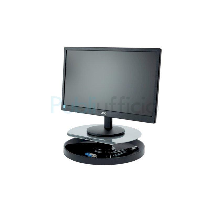 Ottimizza lo spazio sulla tua scrivania con questo innovativo supporto ergonomico. La base rotante SmartFit® è regolabile in altezza per adattarsi al tuo personale livello di comfort, mentre lo speciale portaoggetti brevettato è concepito per riporre e accedere rapidamente a tutti gli accessori utili. Supporta i monitor a schermo piatto (LCD) fino a 18 Kg. Colore nero.