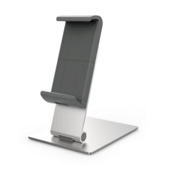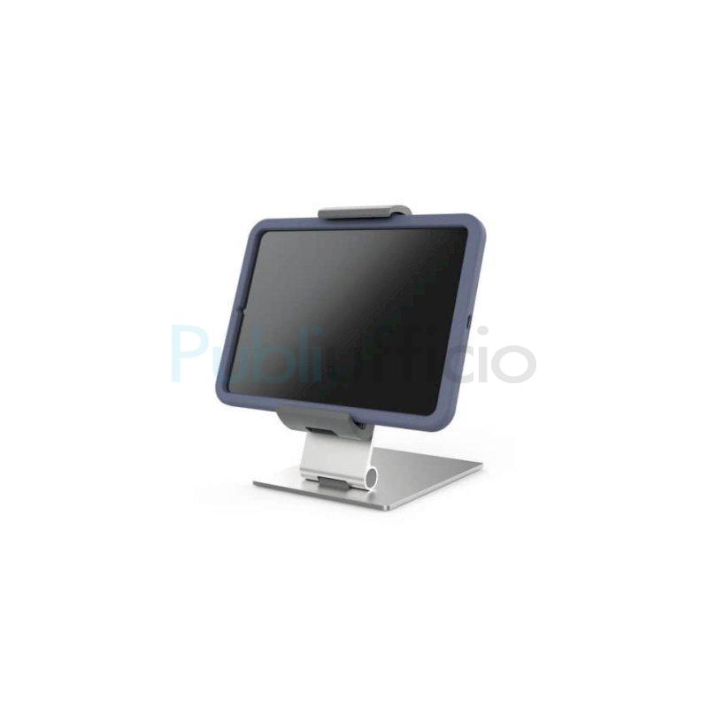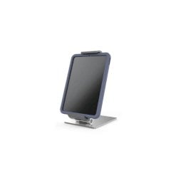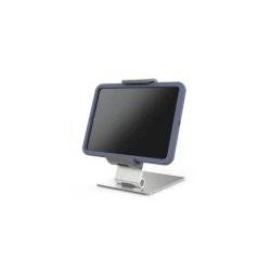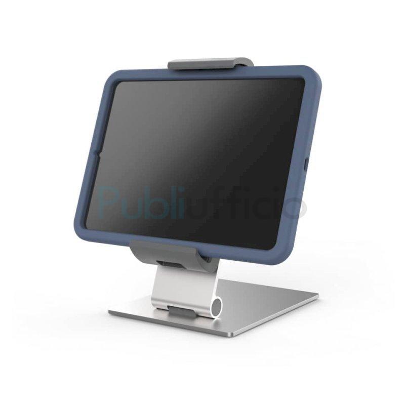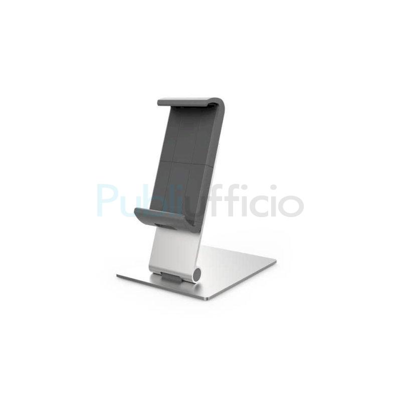 Supporto da tavolo per tablet da 7-13 pollici con cover. Ruotabile di 360° per l'utilizzo in verticale e orizzontale (punti di scatto ogni 90°). Angolo visivo regolabile da 0° a 88°. Fissaggio sicuro dei tablet con (o senza) cover protettiva grazie alle staffe con una maggiore profondità (23 mm). Apertura simmetrica delle staffe. Fessura passacavo nella parte inferiore per il passaggio del cavo di ricarica. Il rivestimento in gomma protegge il dispositivo dai danni accidentali. Estremamente stabile e resistente grazie ai materiali di alta qualità: acciaio, alluminio, ABS. Ideale per l’utilizzo in ambito industriale. Dimensioni esterne: 155 x 242 x 183 mm. Colore: argento metallizzato.