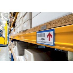 Tasche per identificazione a fissaggio magnetico, ideali per magazzino e logistica. Aderiscono perfettamente su qualsiasi superficie metallica come scaffalature, contenitori in metallo, carrelli e armadietti. Robuste e particolarmente resistenti all'usura e agli strappi, sono realizzate in polipropilene con retro di colore blu e copertina frontale trasparente. Proteggono da sporco e polvere i documenti inseriti. Adatte all'uso con piccole scanner per barcode. Facile sostituzione dell'inserto. È possibile stampare inserti personalizzati utilizzando il software gratuito on-line DURAPRINT® sul sito www.duraprint.it Dimensioni inserto: 150 x 67 mm (LxH) Dimensioni esterne: 163 x 83 mm (LxH).