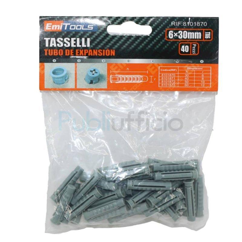 Tasselli in nylon diametro 6 mm per applicazioni normali. Confezione da 40 pezzi. Colore grigio.