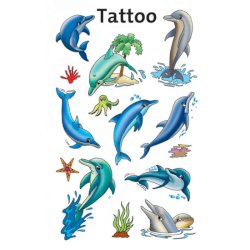 Tatuaggi Kid assortiti in 1 foglio. Edizione: delfini. Dermatologicamente testati. Rispettano le linee guida dell'UE.