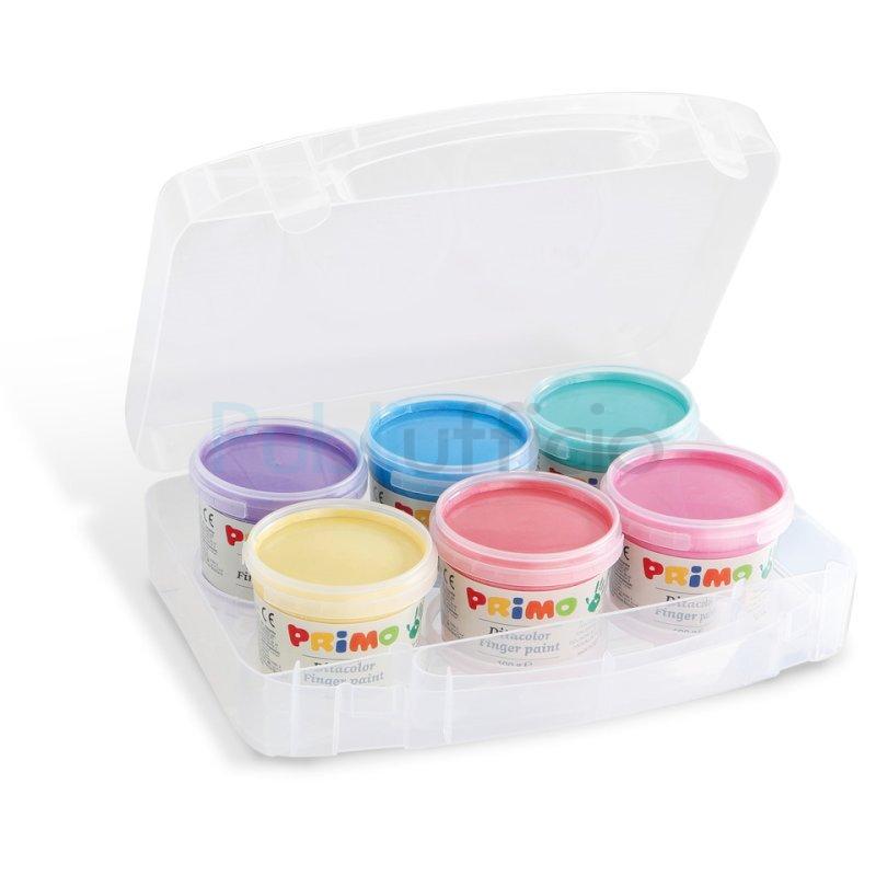Tempera a dita Primo 100 g - valigetta 6 colori perlati assortiti in vasetti in polipropilene - 229TPD100SP