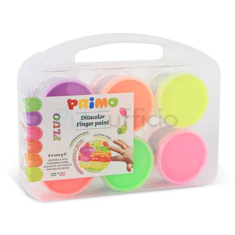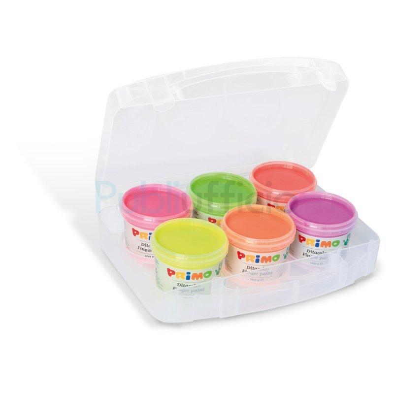 Tempera colori a dita Primo 100 ml valigetta 6 colori assortiti fluo - 2214TD6FLUO