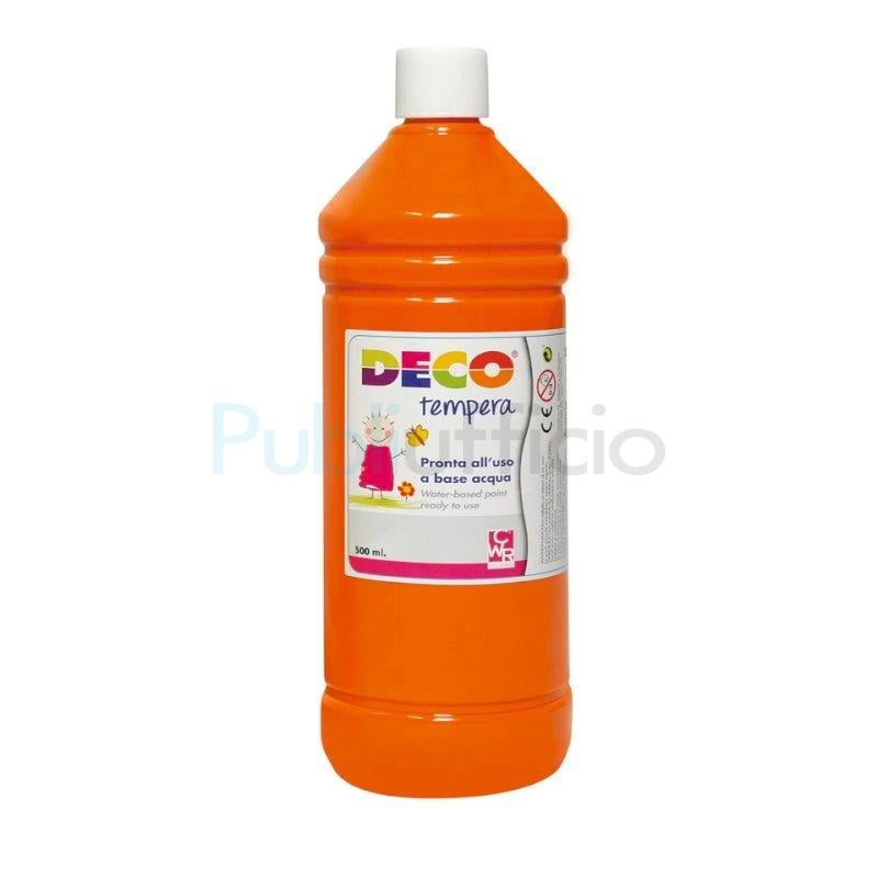 Tempera in flacone a base d’acqua. Disponibile in colori brillanti e facilmente miscelabili tra loro. La tempera è atossica e permette di ottenere un’ampia gamma di tonalità. È, anche, pronta all’uso e lavabile. Ideale per dipingere in totale libertà. Formato: 500 ml. Colore: arancio.
