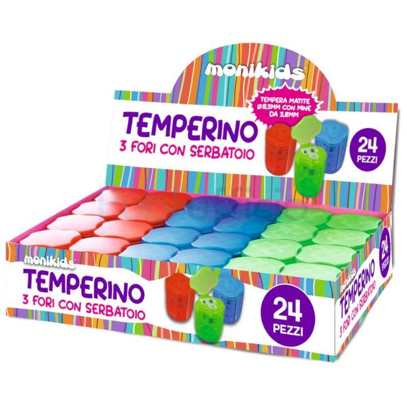 Temperamatite a 3 fori con serbatoio e tappo Nikoffice colori assortiti - 12NIK037