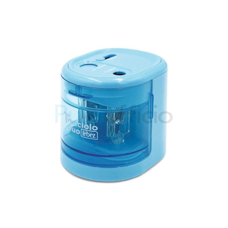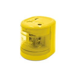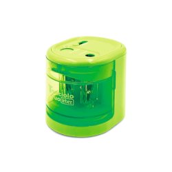 Temperamatite da tavolo a 2 fori da tavolo a batteria con serbatoio. Ideale per matite fino a 12 mm di diametro. Temperino sostituibile. Scatola appendibile. Batterie AA x4 (non incluse). Colori assortiti.