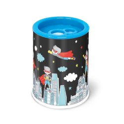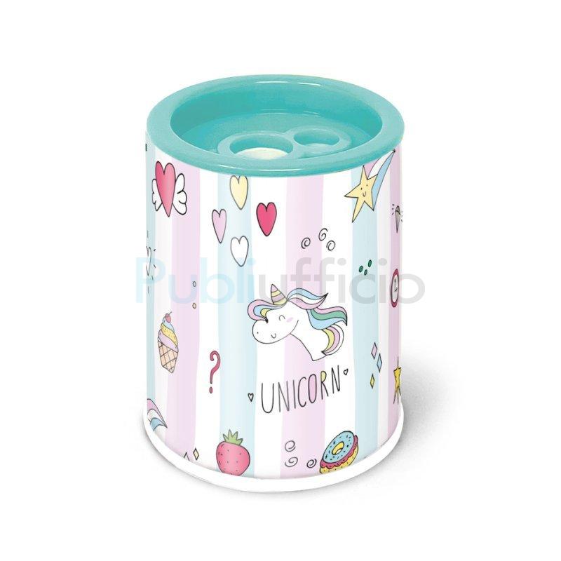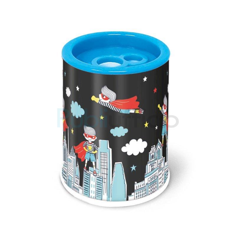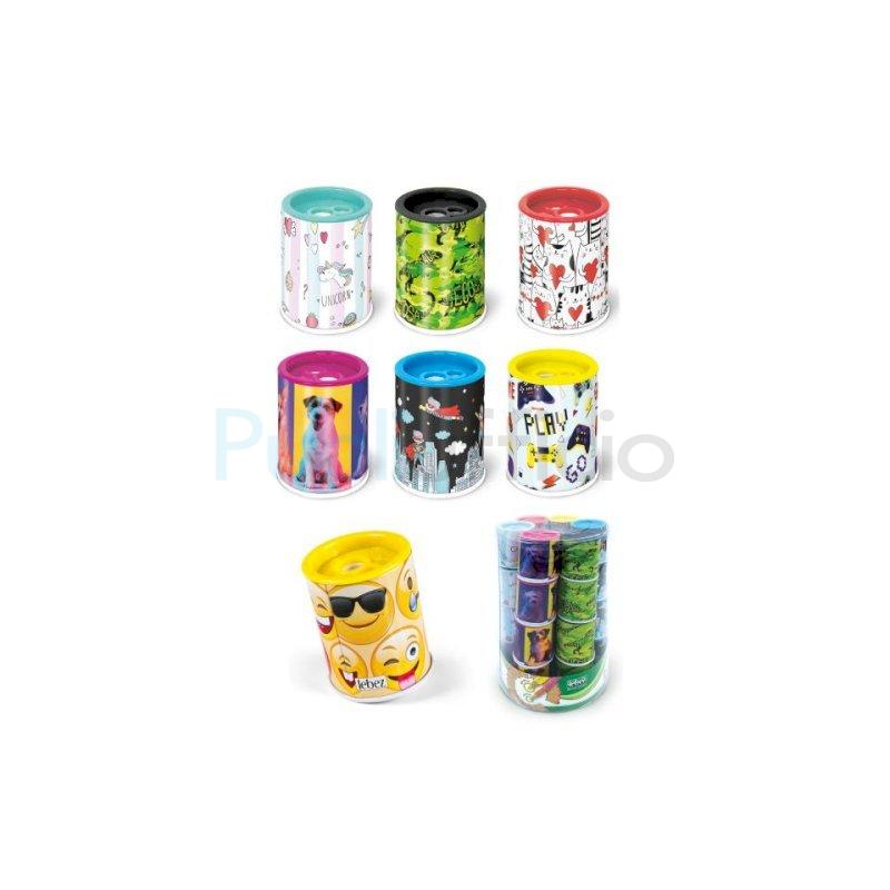 Tempera matite a 2 fori (standard e jumbo) con serbatoio in metallo verniciato. Confezione composta da 24 pezzi, colori assortiti.