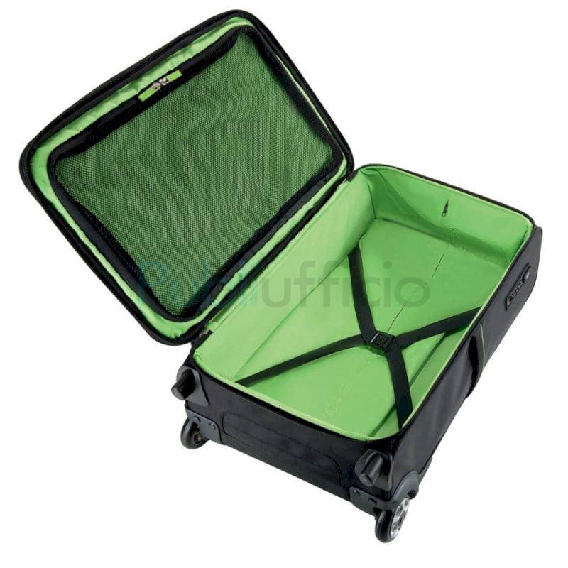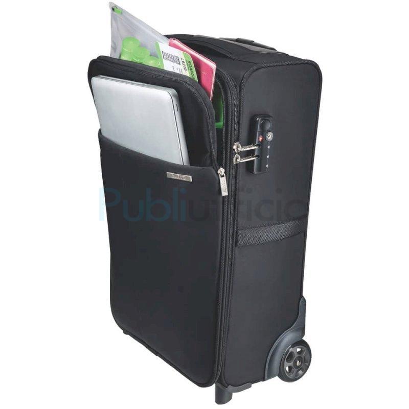 Trolley Slim a 2 ruote con profilo in metallo, carrello doppio tubo robusto. Con lucchetto TSA ( Transportation Security Administration ) a 3 cifre per lo scomparto principale e cappio di sicurezza. Misure : L.350 x 550 x 200 mm.