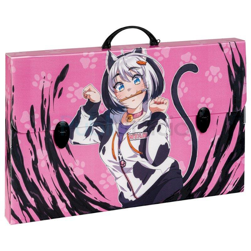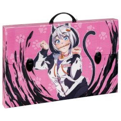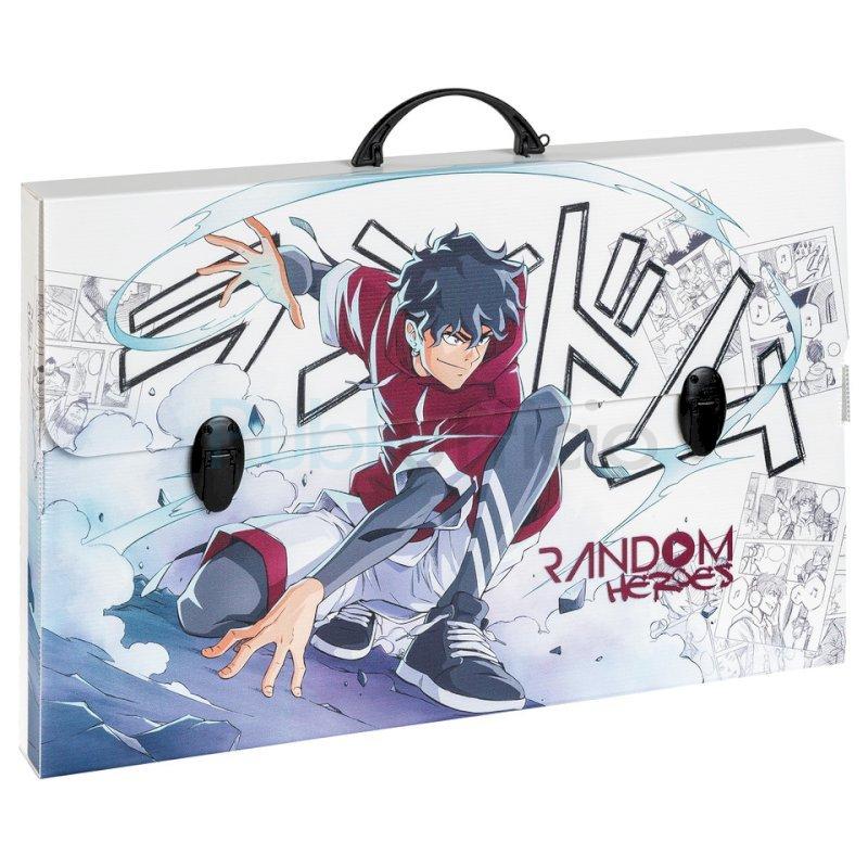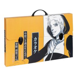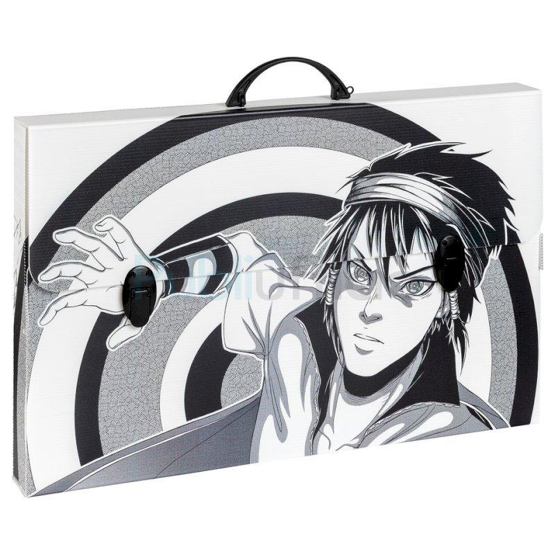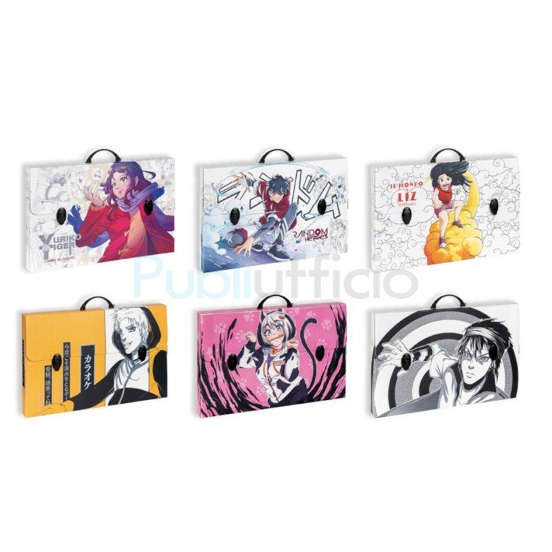 Valigetta in polipropilene alveolare con stampa ''MANGA''. Realizzate in collaborazione con l'Accademia Europea di Manga. Disponibili in 6 soggetti assortiti. Complete di film protettivo e di chiusura a 2 clip. Dimensione 56,5x36,5x5,5 cm.
