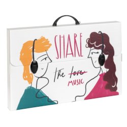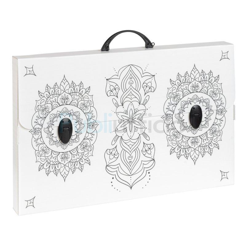 Valigetta in polipropilene alveolare con stampa ''SMART''. Disponibili in 6 soggetti assortiti. Complete di film protettivo e chiusura a 2 clip. Dimensioni 56,5x36,5x5,5 cm.
