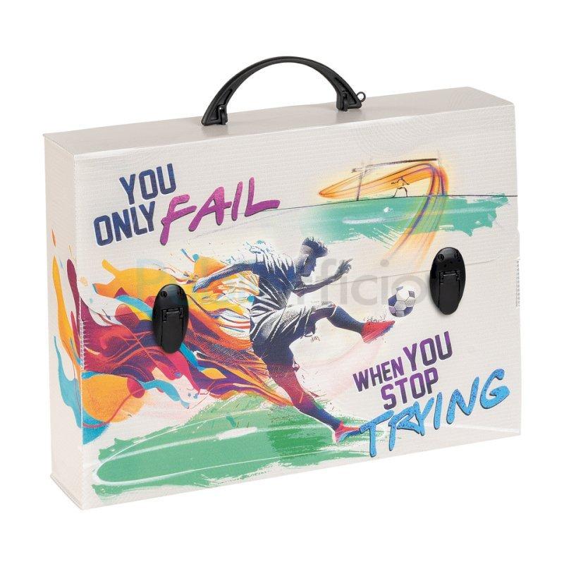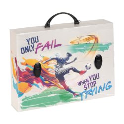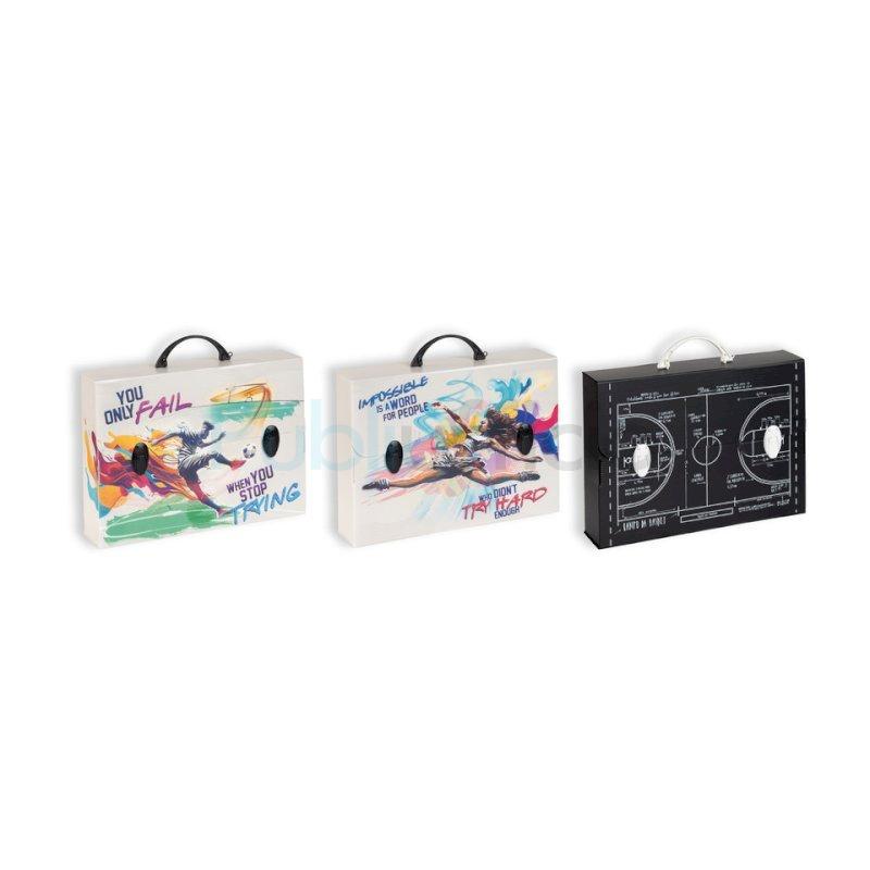 Valigetta in polipropilene alveolare con stampa ''SPORT'' . Disponibili in 6 soggetti assortiti . Complete di film protettivo e chiusura a 1 clip. Dimensioni 37,5x27x8 cm.