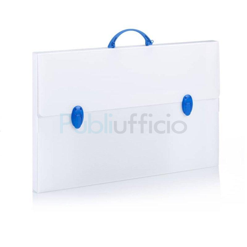 Valigetta Every Line in polipropilene alveolare neutro. Ideale per riporre e trasportare comodamente documenti, disegni, progetti e righe lunghe fino a 60 cm. Completa di film protettivo, maniglia e due pratiche chiusure a scatto. Formato 56,5(L)x36,5(H) dorso 3,5 cm. Colore valigetta neutro. Colore accessori assortiti.