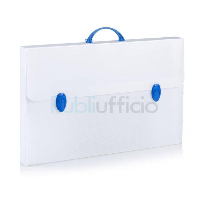 Valigetta Every Line in polipropilene alveolare neutro. Ideale per riporre e trasportare comodamente documenti, disegni, progetti e righe lunghe fino a 60 cm. Completa di film protettivo, maniglia e due pratiche chiusure a scatto. Formato 56,5(L)x36,5(H) dorso 5,5 cm. Colore valigetta neutro. Colore accessori assortiti.