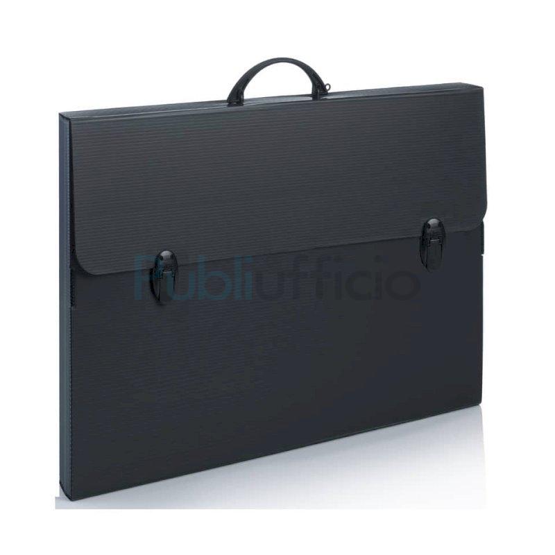 Valigetta Every Line Total Black in polipropilene alveolare nero. Ideale per riporre e trasportare comodamente documenti, disegni, progetti e righe lunghe fino a 60 cm. Completa di film protettivo, maniglia e due pratiche chiusure a scatto. Formato: (L) 73,5 x (H) 52 cm. Dorso 5 cm. Colore nero.